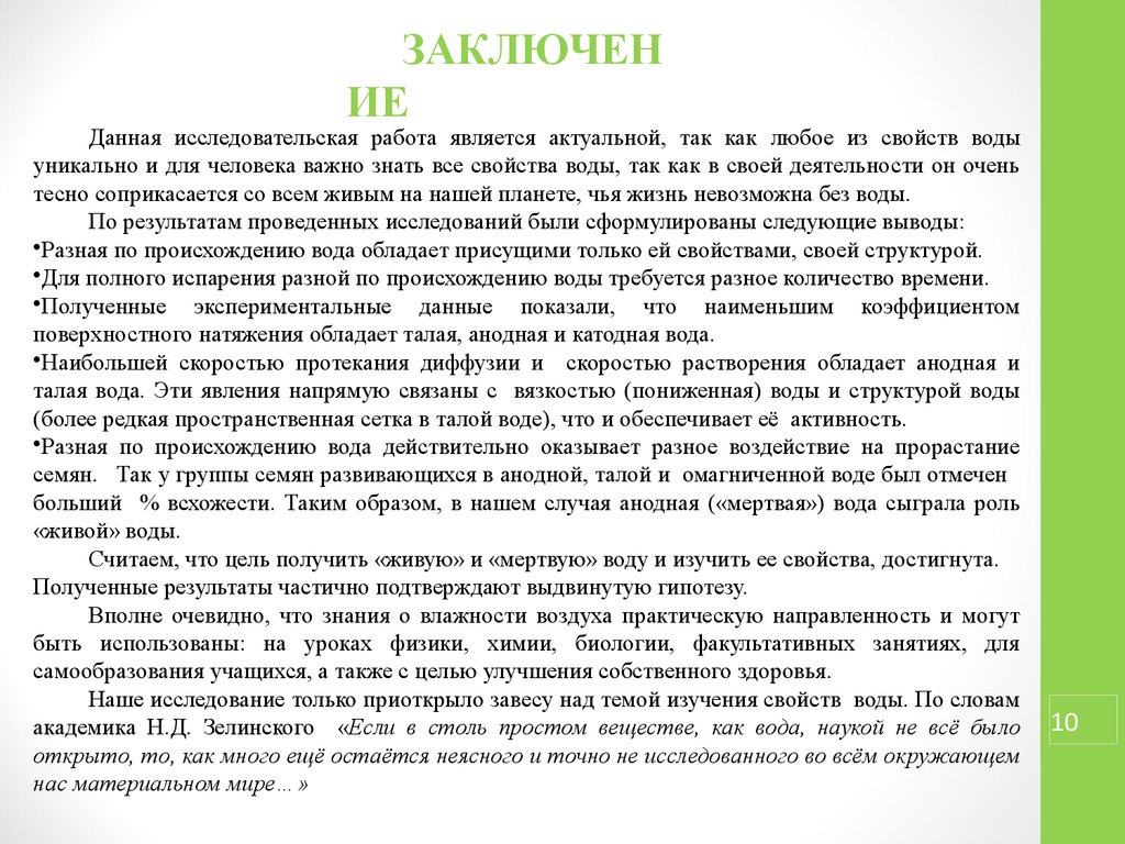Данная исследовательская работа является актуальной, так как любое из свойств воды