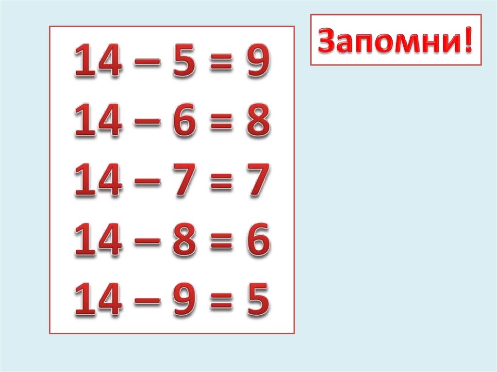 Вычитание вида 14- ,15-
