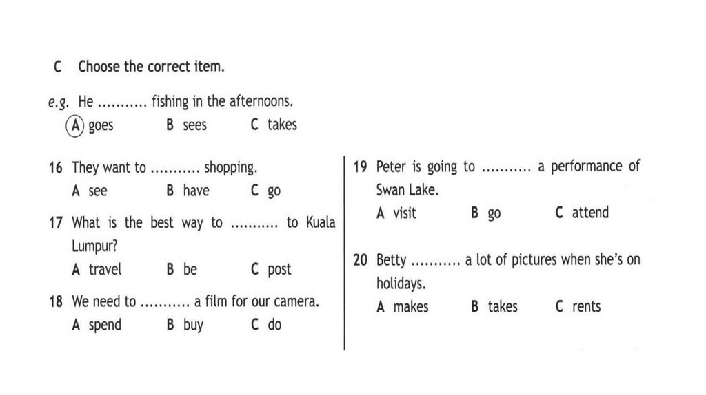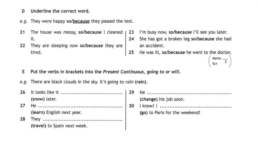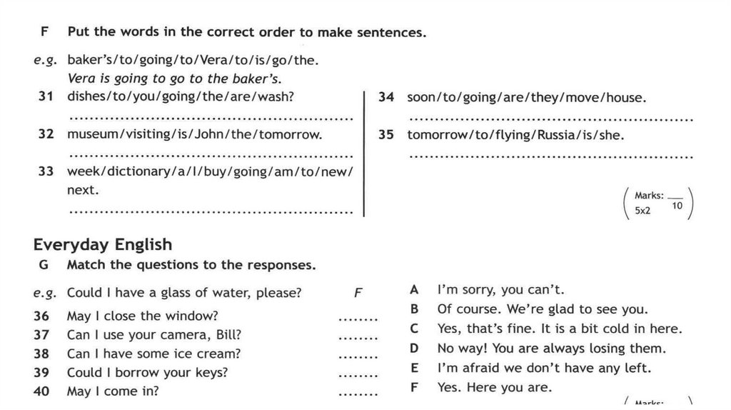Только в задании F, напишите полное предложение.