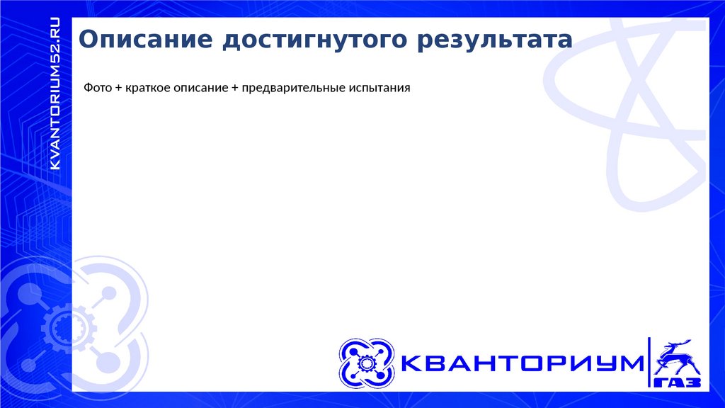 Описание достигнутого результатаФото + краткое описание + предварительные испытания