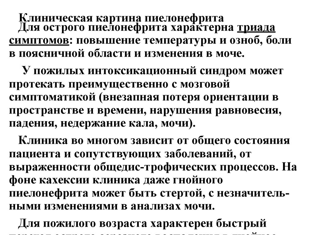 Клиническая картина пиелонефритаДля острого пиелонефрита характерна триада