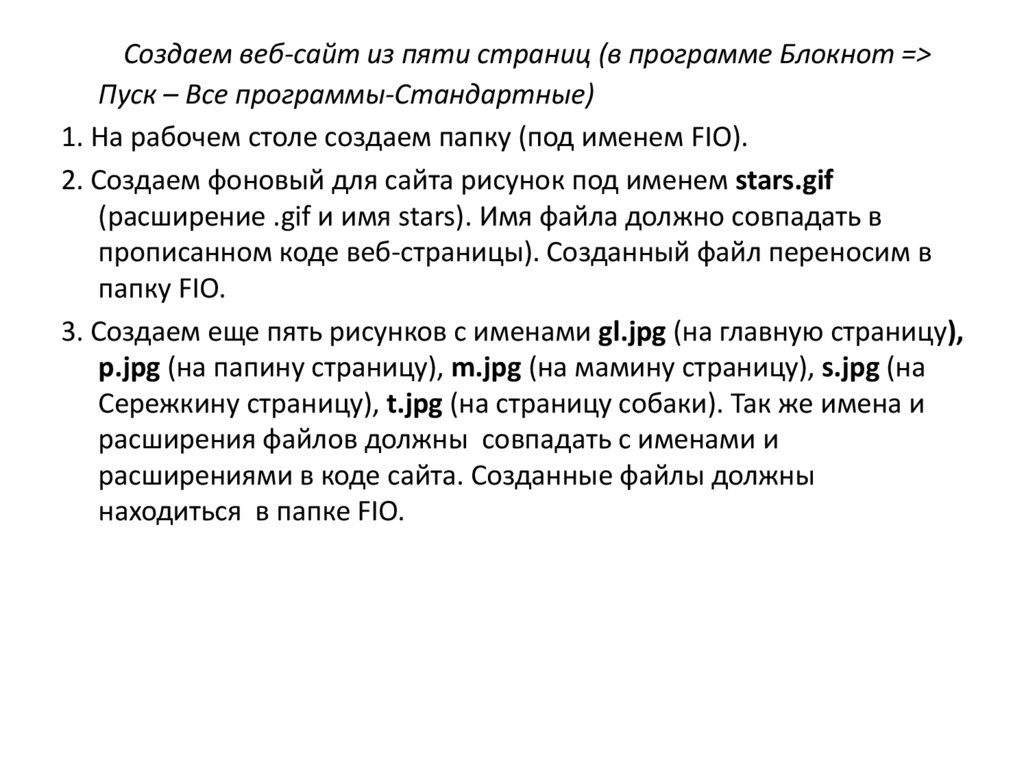 Создаем веб-сайт из пяти страниц (в программе Блокнот =>Пуск – Все программы-Стандартные)