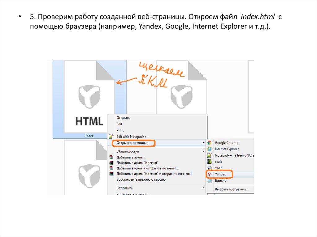 5. Проверим работу созданной веб-страницы. Откроем файл index.html с