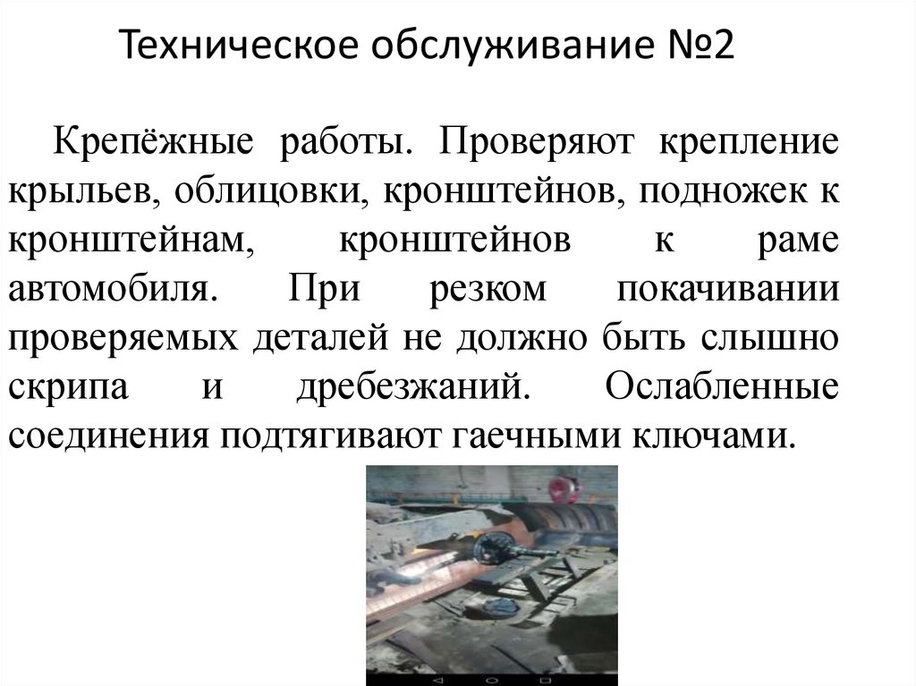 Техническое обслуживание №2Крепёжные работы. Проверяют крепление