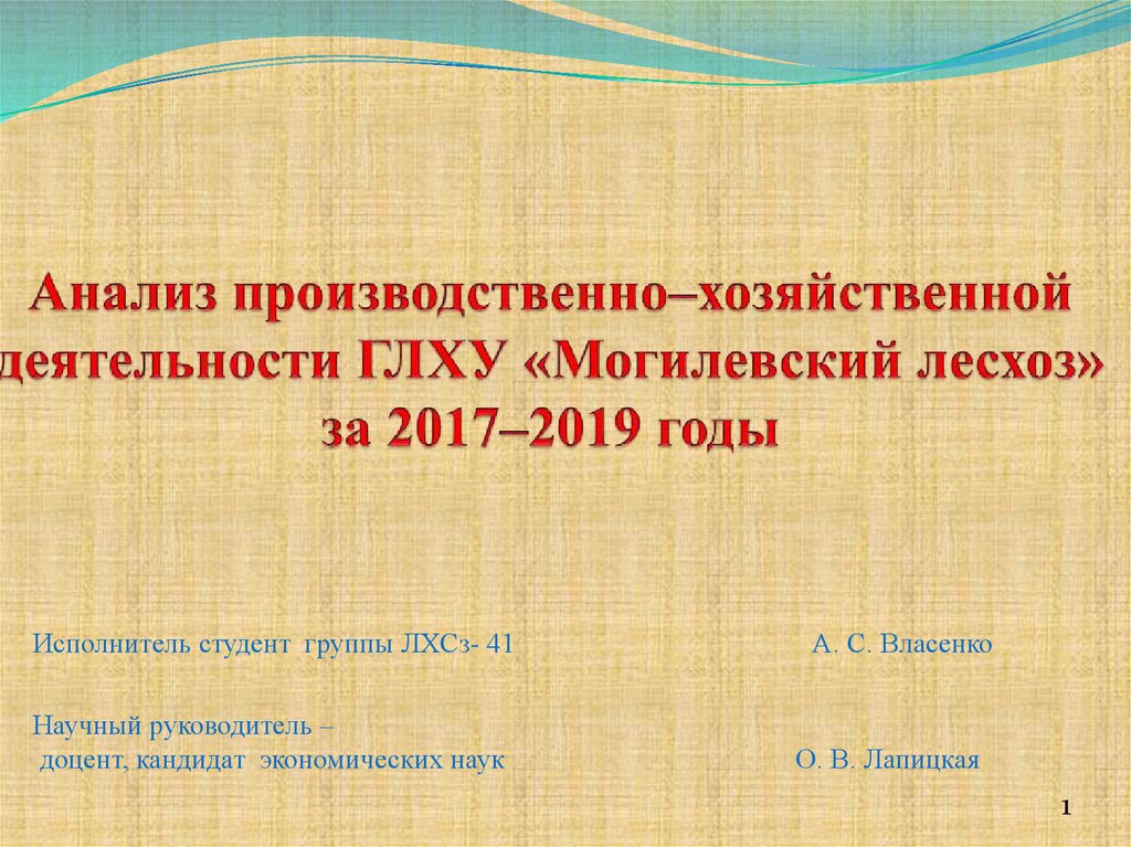 1. Анализ производственно–хозяйственной деятельности ГЛХУ «Могилевский лесхоз» за 2017–2019 годы