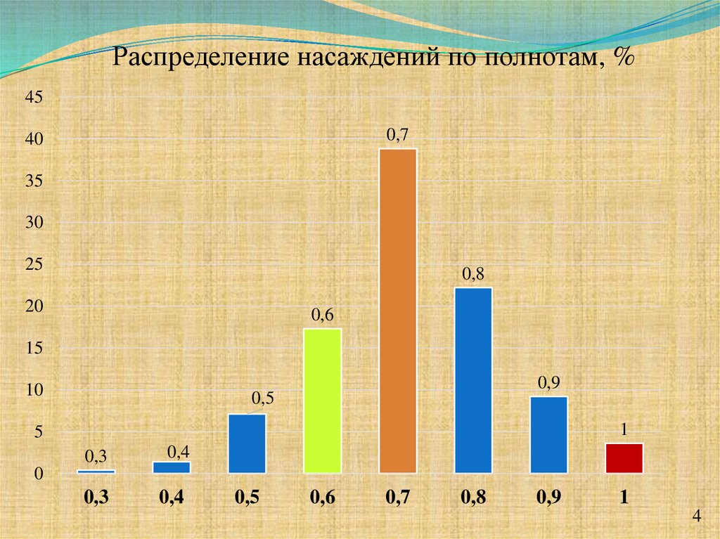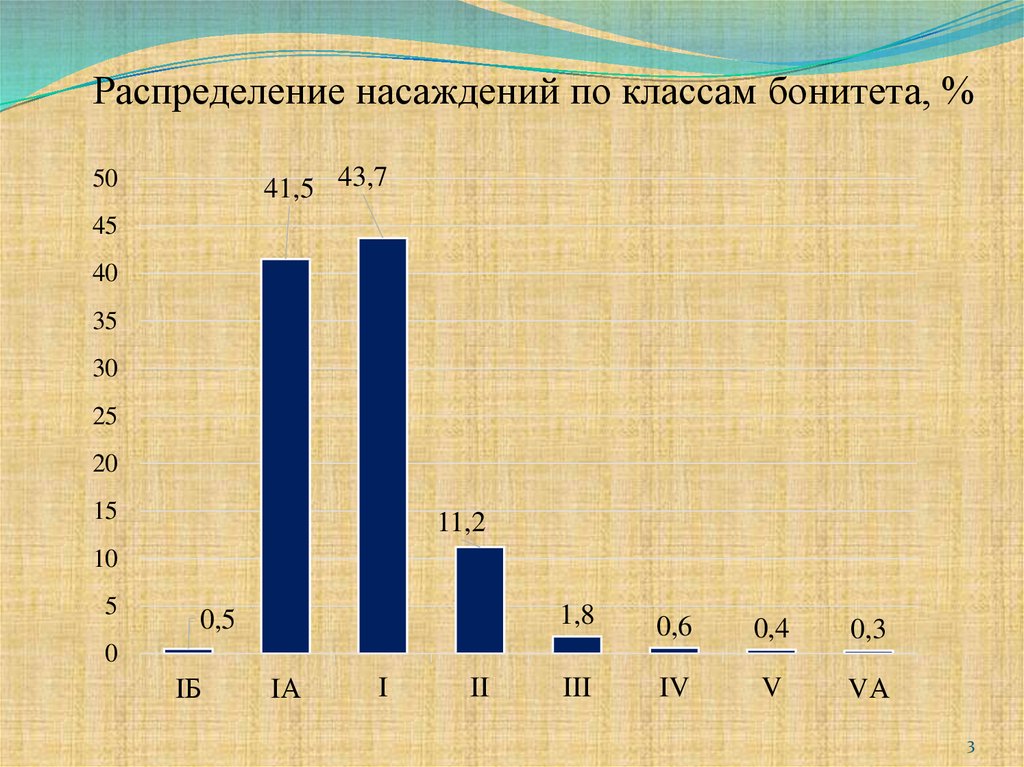 Распределение насаждений по классам бонитета, %41,5 43,7
