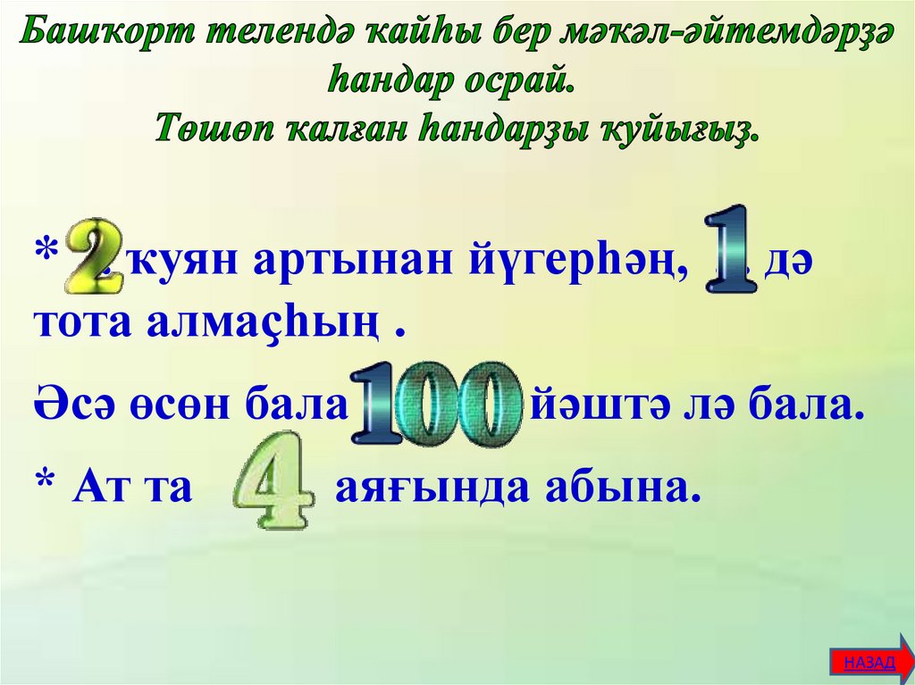 * … ҡылдан арҡан ишеп булмай.* … тәкә башы … ҡаҙанға һыймай.