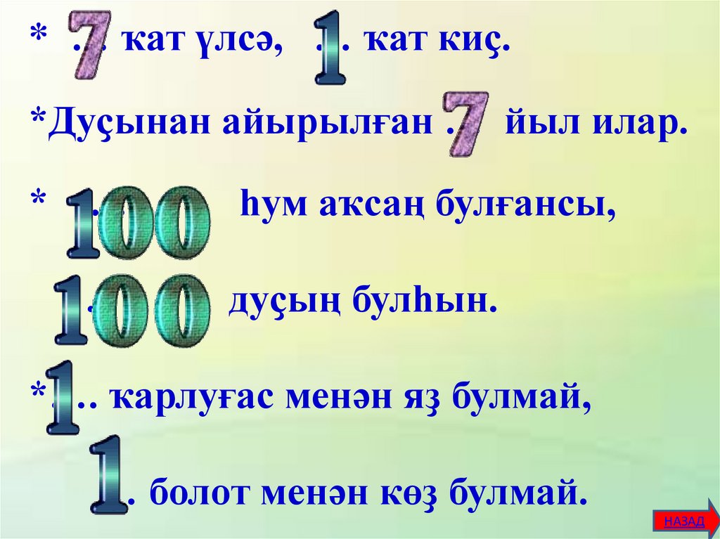 * … ҡат үлсә, … ҡат киҫ.*Дуҫынан айырылған … йыл илар.