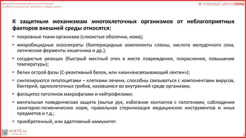 барьерной функцией; кислой реакцией секретов, которые выделяются на поверхность слизистых