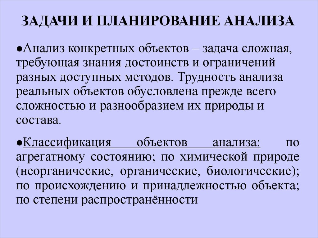 ЗАДАЧИ И ПЛАНИРОВАНИЕ АНАЛИЗААнализ