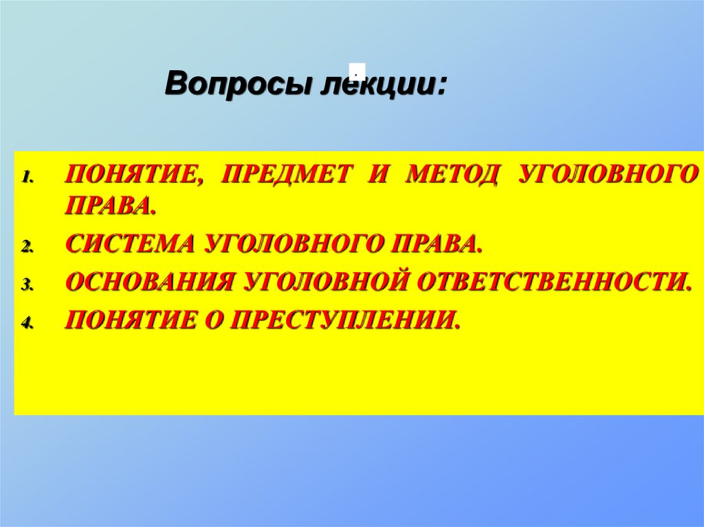 ПОНЯТИЕ, ПРЕДМЕТ И МЕТОД УГОЛОВНОГО