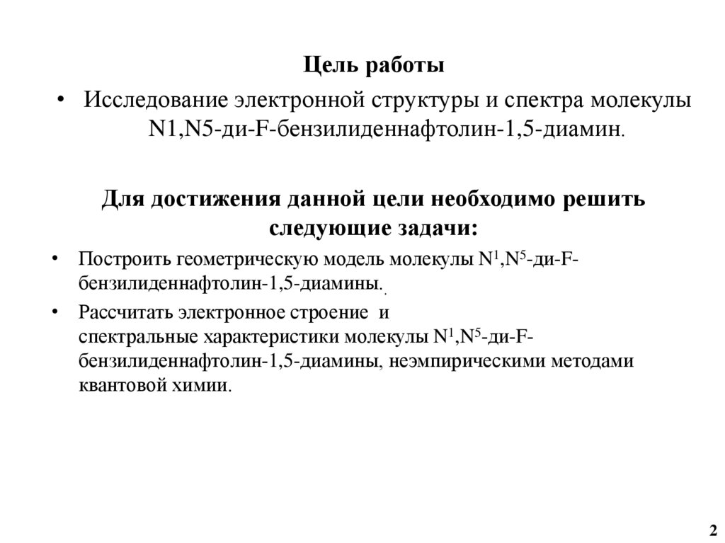 Цель работы• Исследование электронной структуры и спектра молекулы