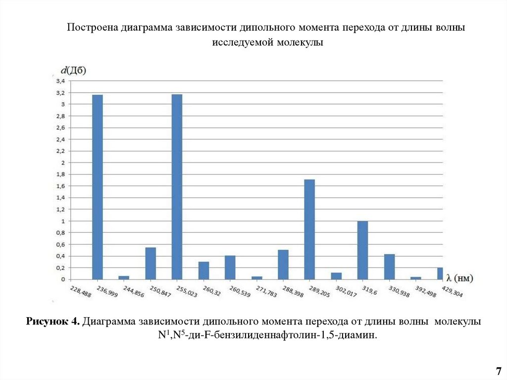 Построена диаграмма зависимости дипольного момента перехода от длины волныисследуемой молекулы