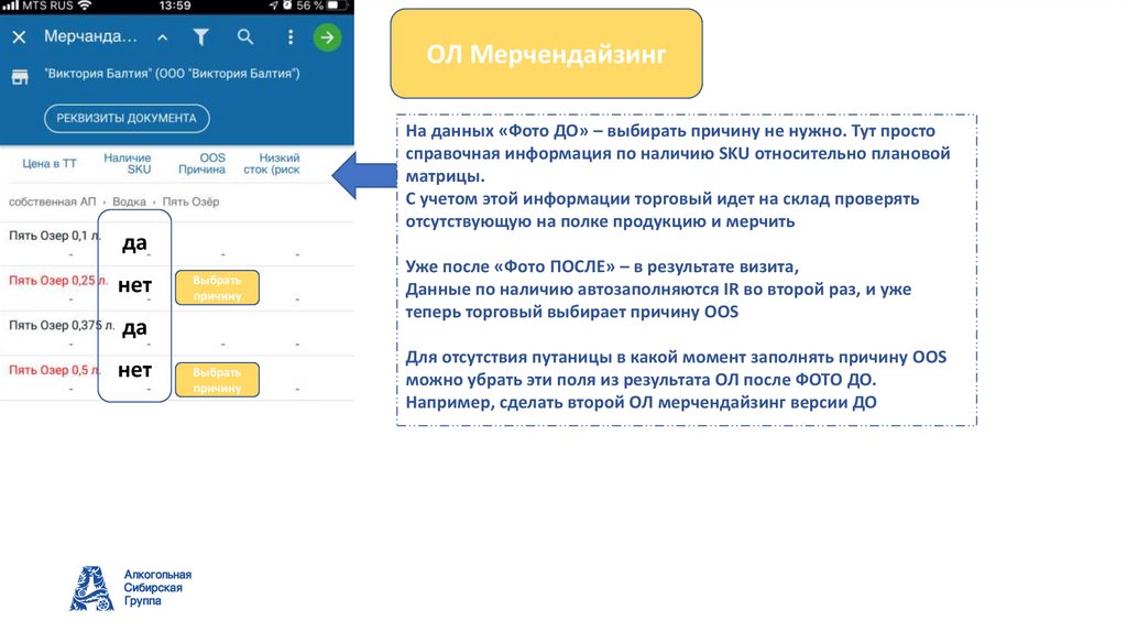 ОЛ МерчендайзингНа данных «Фото ДО» – выбирать причину не нужно. Тут просто