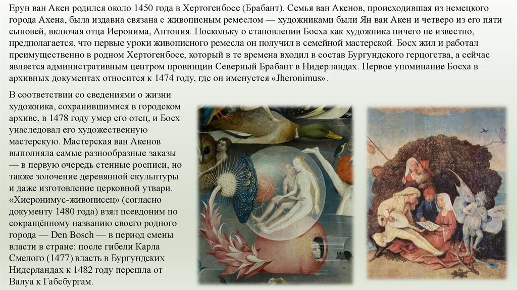 сыновей, включая отца Иеронима, Антония. Поскольку о становлении Босха как художника ничего не известно,