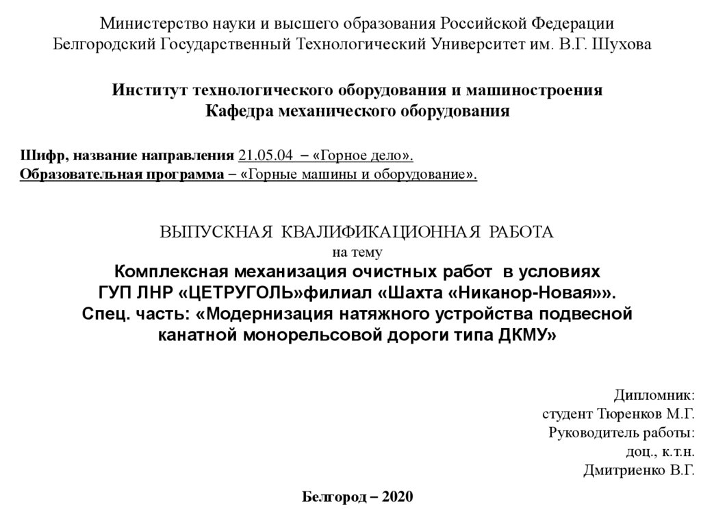 Министерство науки и высшего образования Российской ФедерацииБелгородский Государственный Технологический Университет им. В.Г. Шухова