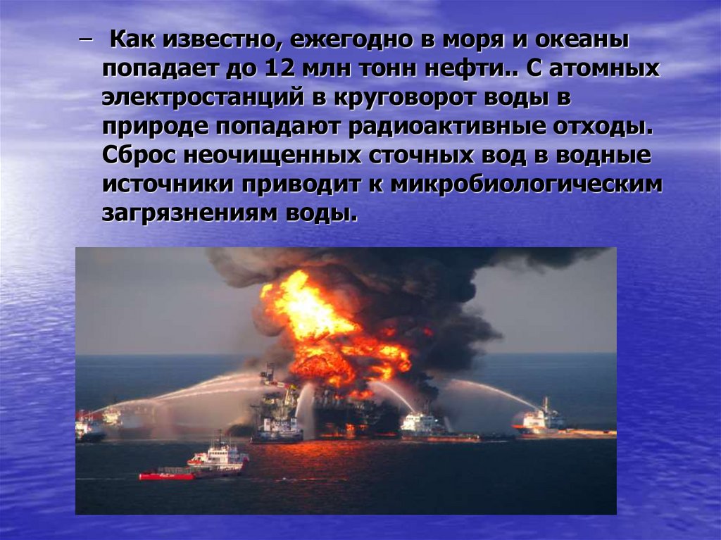 – Как известно, ежегодно в моря и океаныпопадает до 12 млн тонн нефти.. С атомных