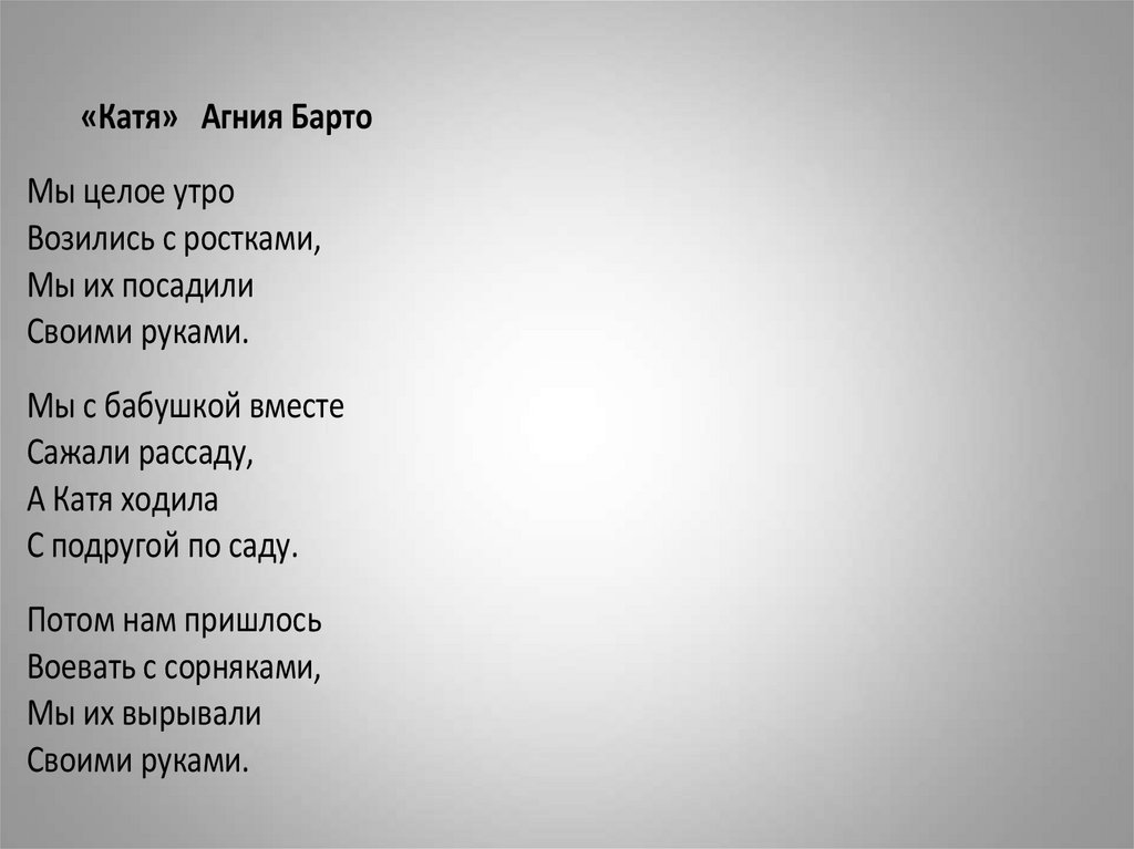 «Катя» Агния БартоМы целое утро