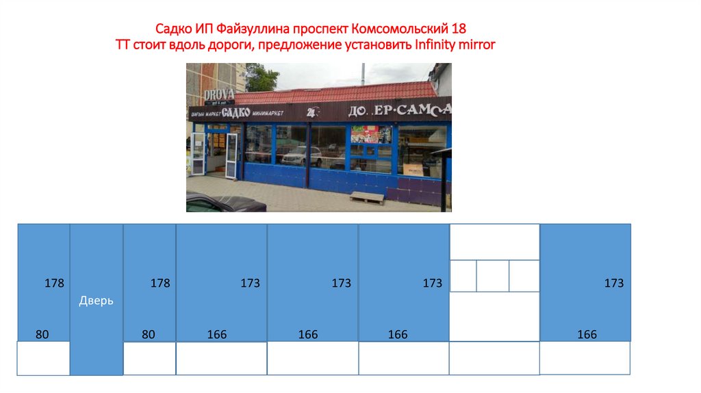 Садко ИП Файзуллина проспект Комсомольский 18 ТТ стоит вдоль дороги, предложение установить Infinity mirror
