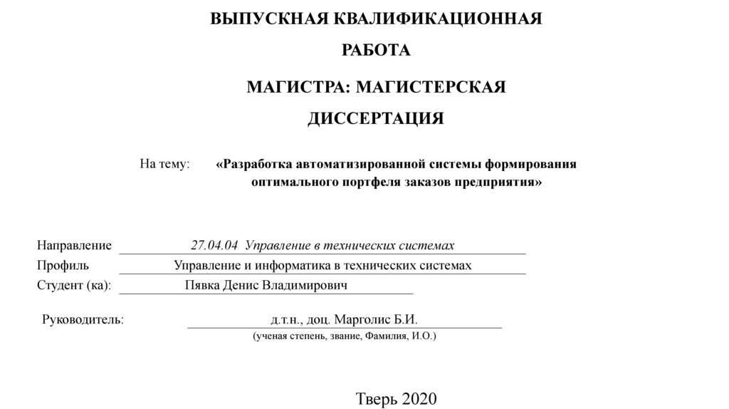 ВЫПУСКНАЯ КВАЛИФИКАЦИОННАЯРАБОТА