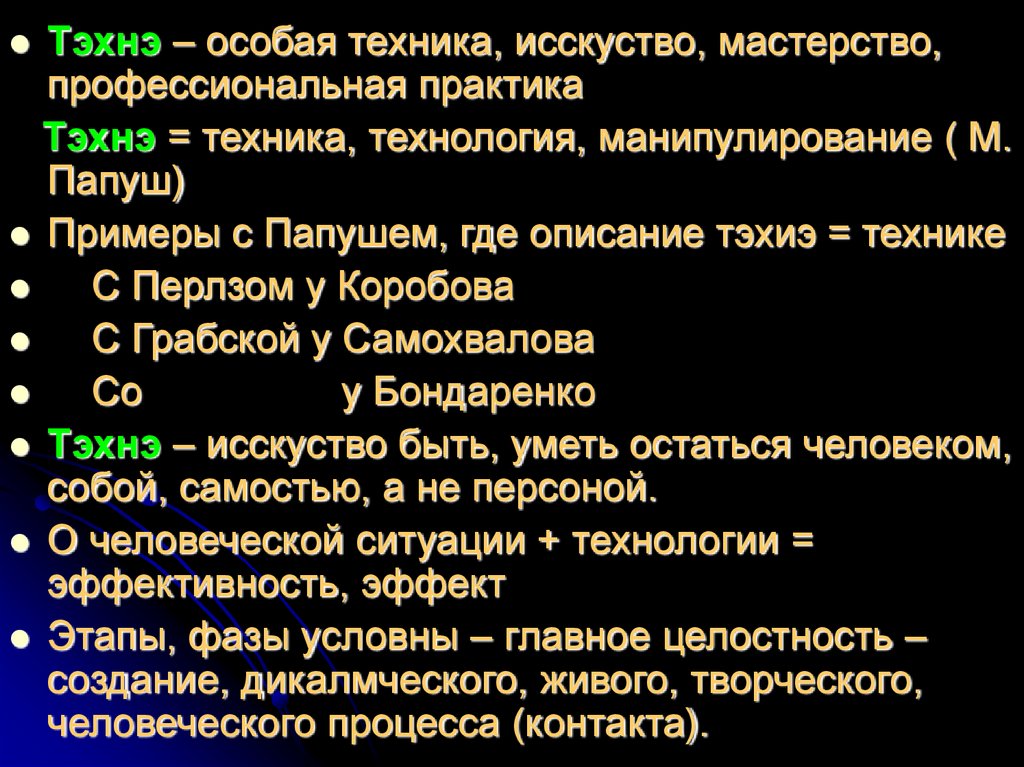 Тэхнэ – особая техника, исскуство, мастерство,профессиональная практика