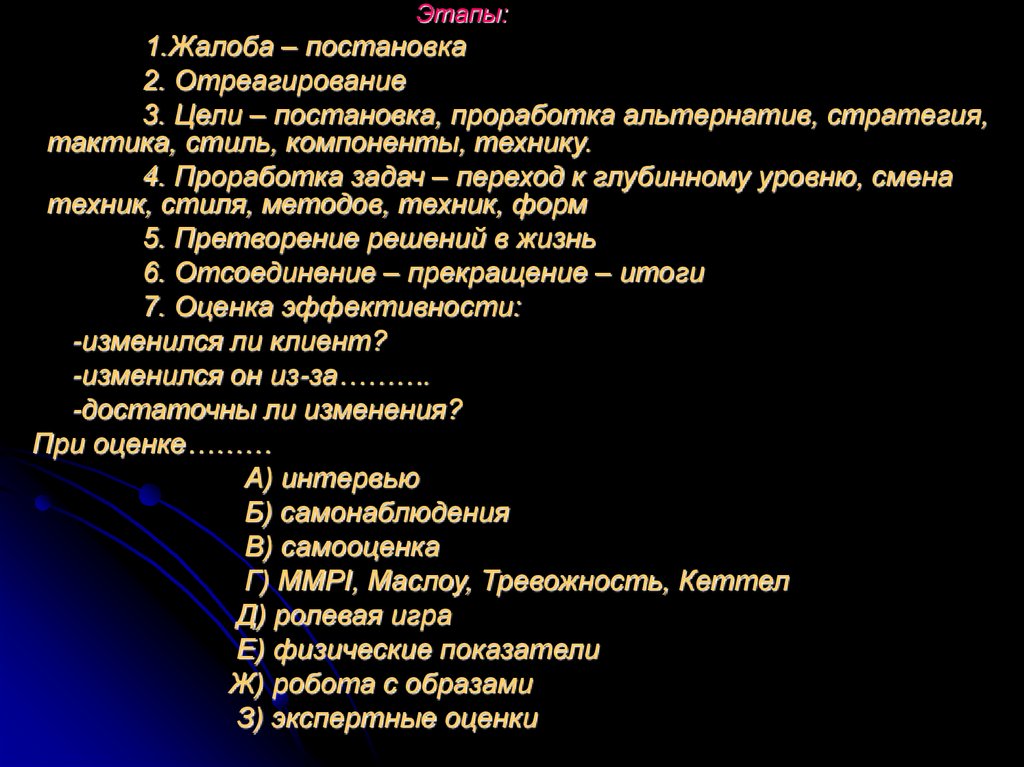 Этапы:1.Жалоба – постановка