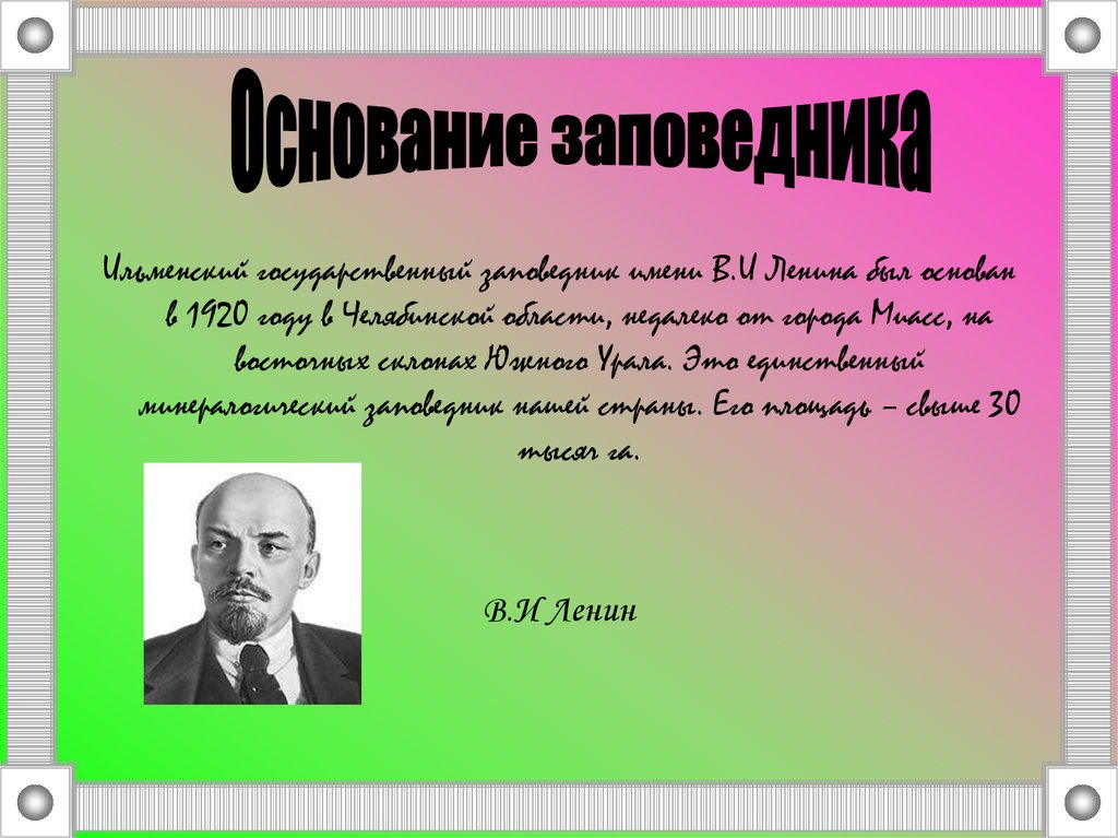 Ильменский государственный заповедник имени В.И Ленина был основанв 1920 году в Челябинской области, недалеко от города Миасс, на