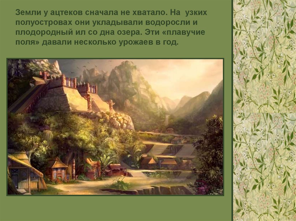 Земли у ацтеков сначала не хватало. На узкихполуостровах они укладывали водоросли и