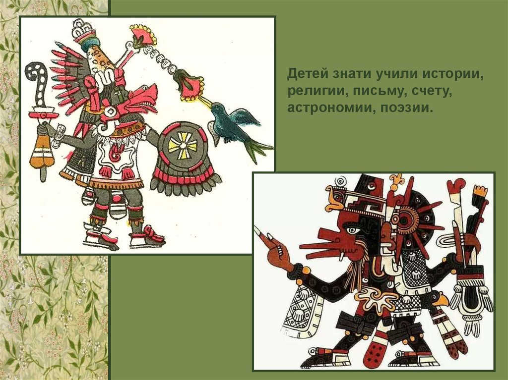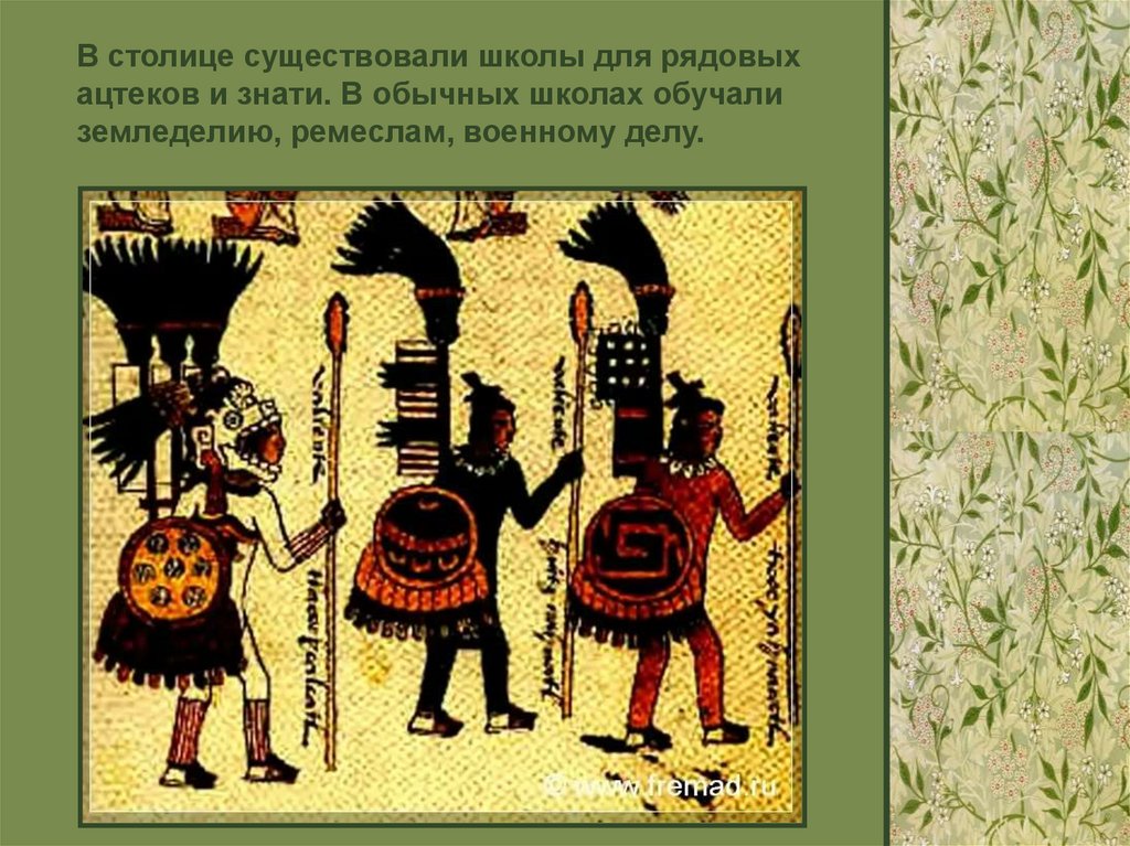 В столице существовали школы для рядовыхацтеков и знати. В обычных школах обучали