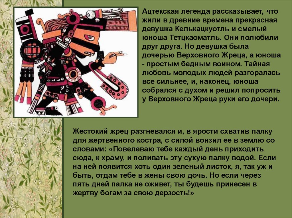 Ацтекская легенда рассказывает, чтожили в древние времена прекрасная