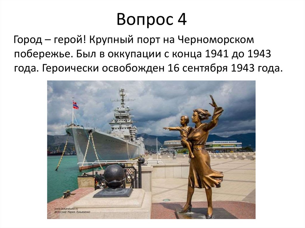 Город – герой! Крупный порт на Черноморскомпобережье. Был в оккупации с конца 1941 до 1943