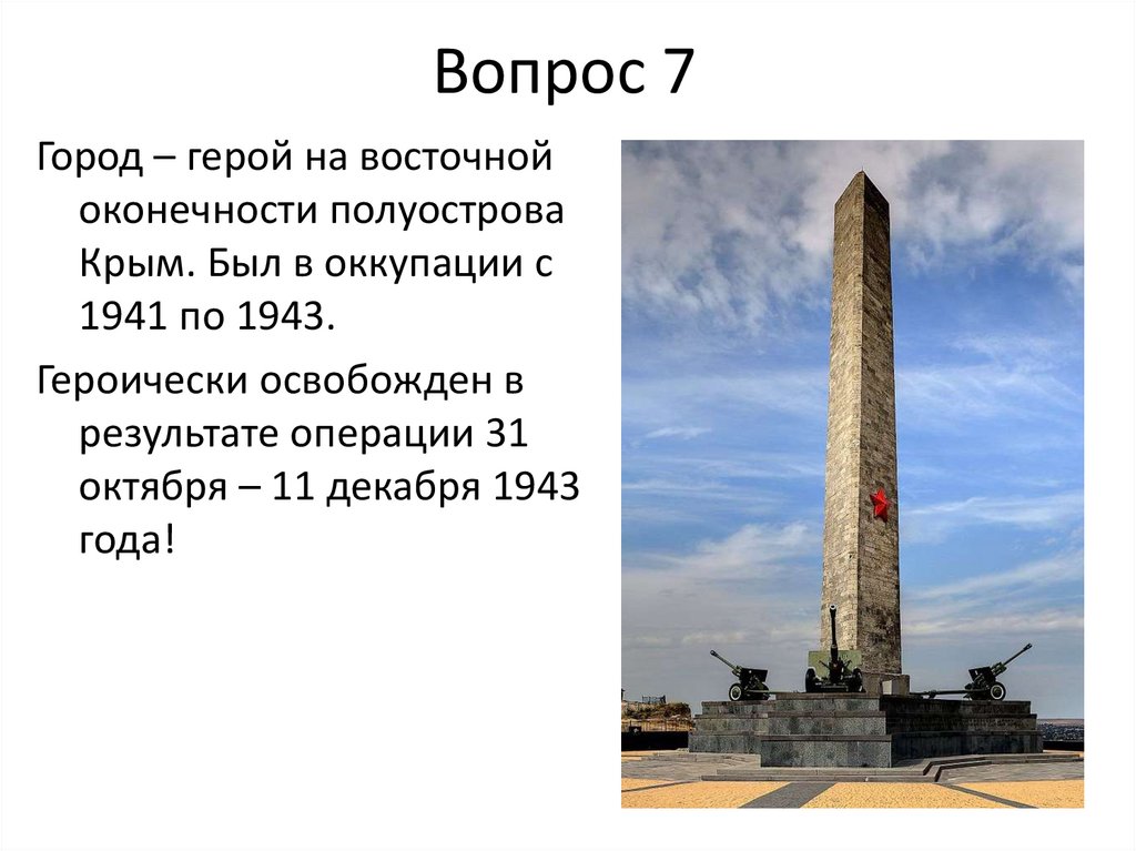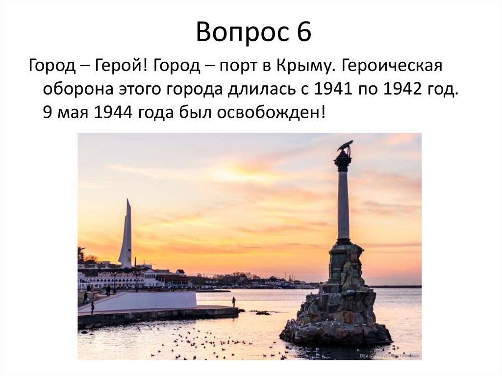 Город – Герой! Город – порт в Крыму. Героическаяоборона этого города длилась с 1941 по 1942 год.