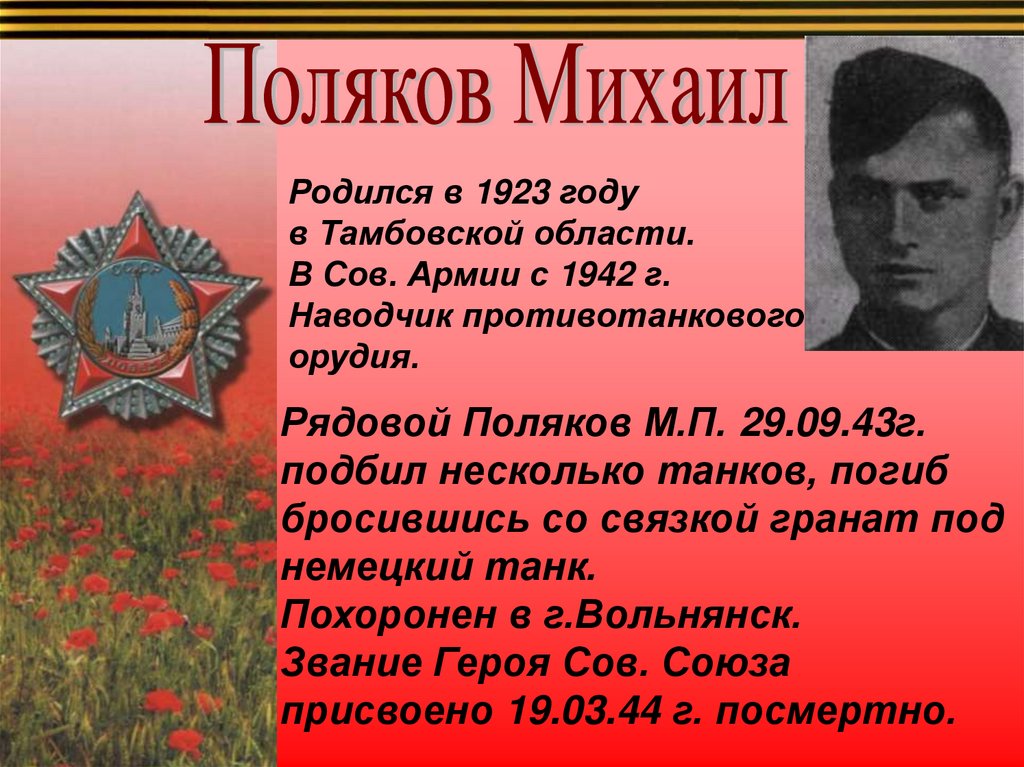 подбил несколько танков, погиб