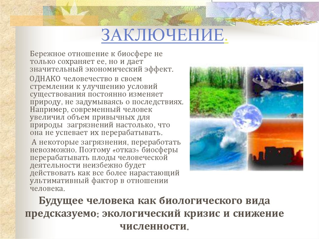 Бережное отношение к биосфере нетолько сохраняет ее, но и дает