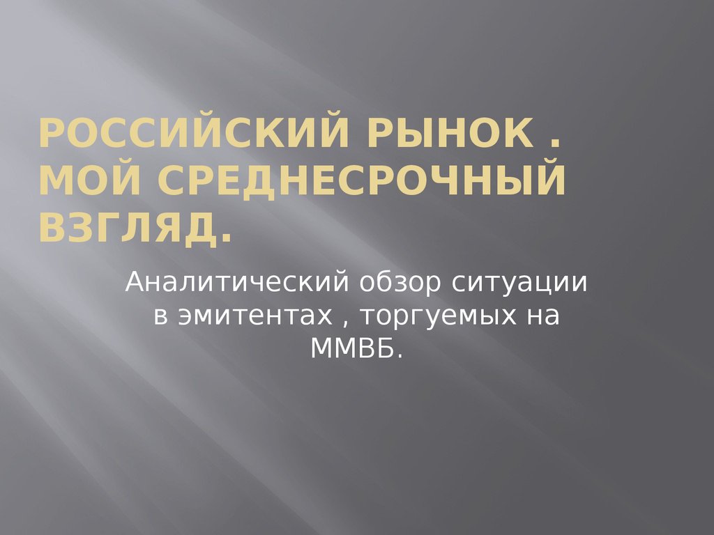Российский рынок . Мой среднесрочный взгляд. Аналитический обзор ситуации в эмитентах , торгуемых на ММВБ