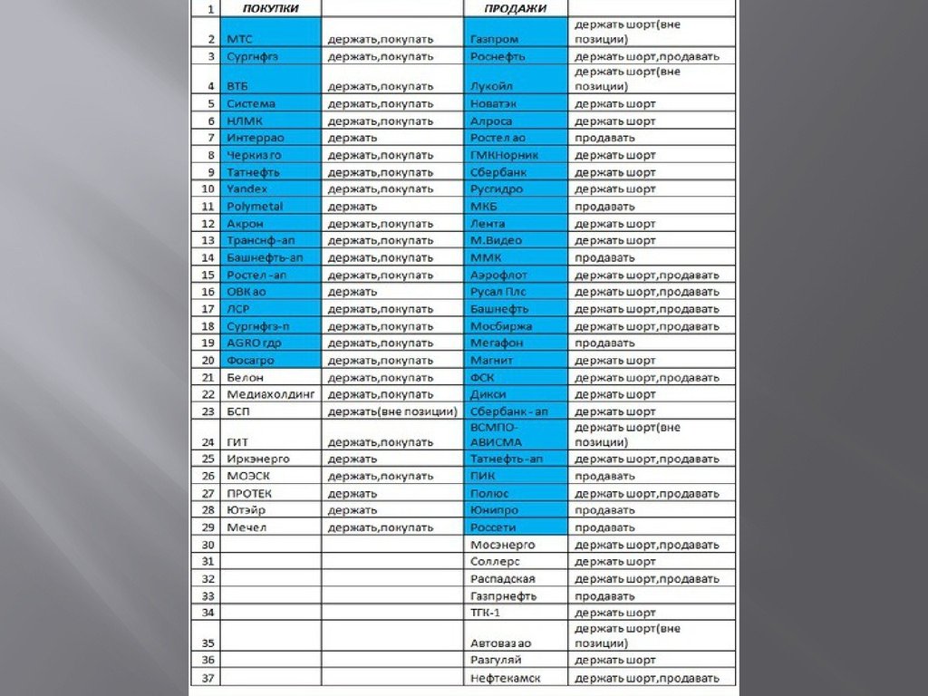 Все эмитенты разложены на две группы – ПОКУПКИ и