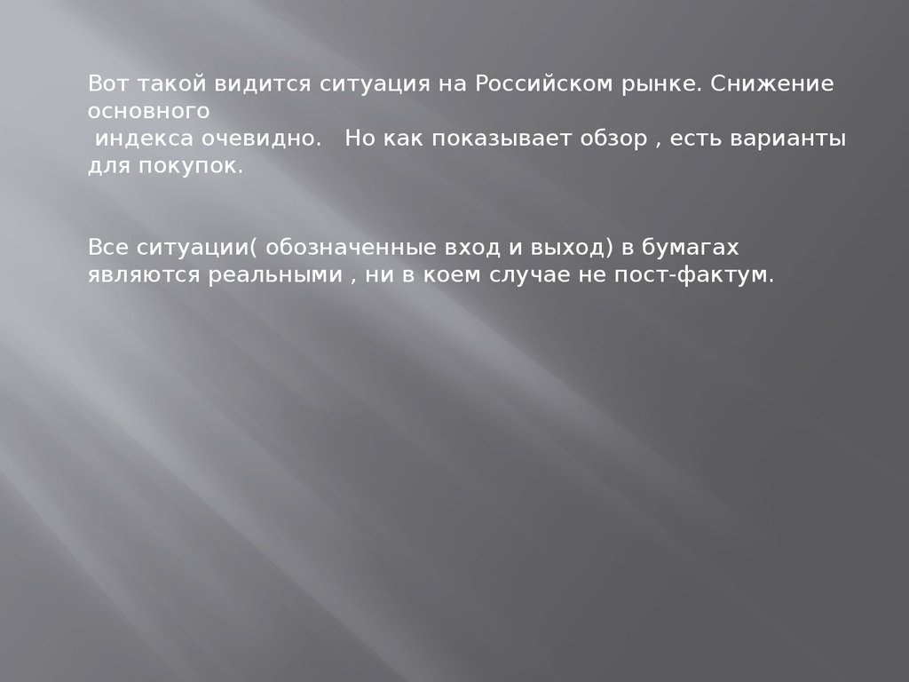 Вот такой видится ситуация на Российском рынке. Снижениеосновного