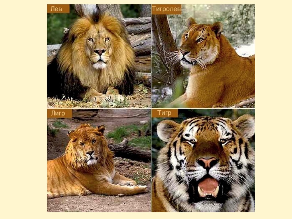 Лигр - это гибрид льва итигрицы, а тигон, или