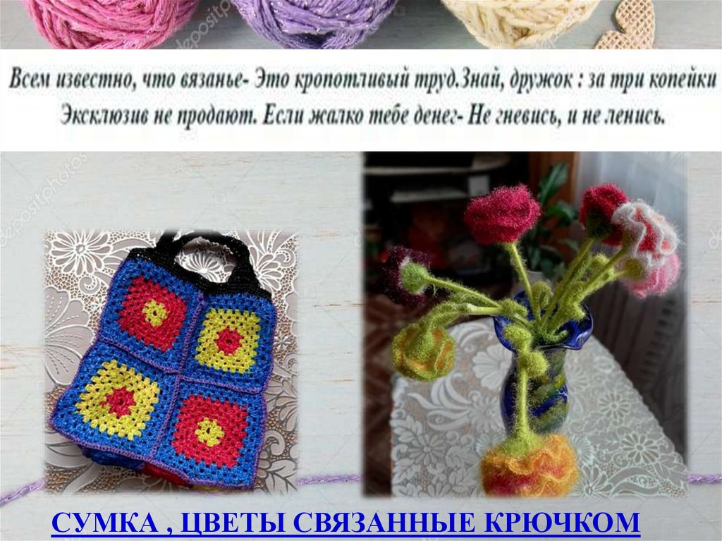 СУМКА , ЦВЕТЫ СВЯЗАННЫЕ КРЮЧКОМ7.