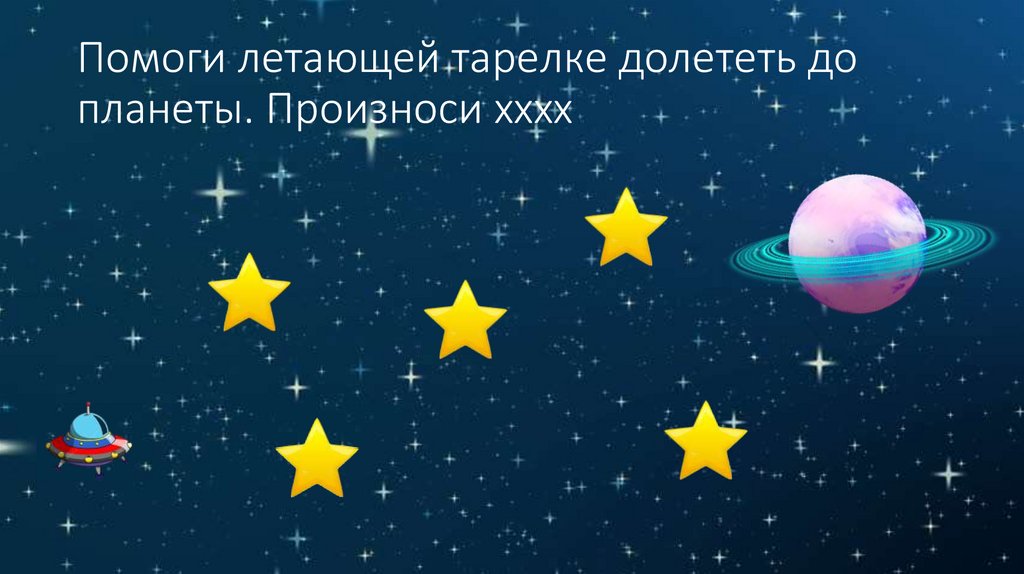 Помоги летающей тарелке долететь допланеты. Произноси хххх