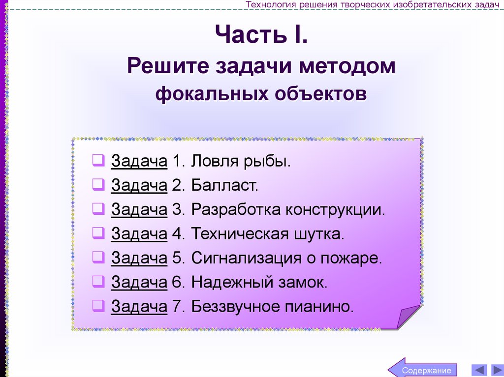 Технология решения творческих изобретательских задачЧасть I. Решить задачи методом МФО.