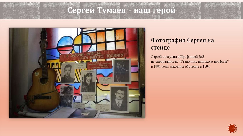 Сергей Тумаев - наш геройВ музее хранится гитара Сергея, которую