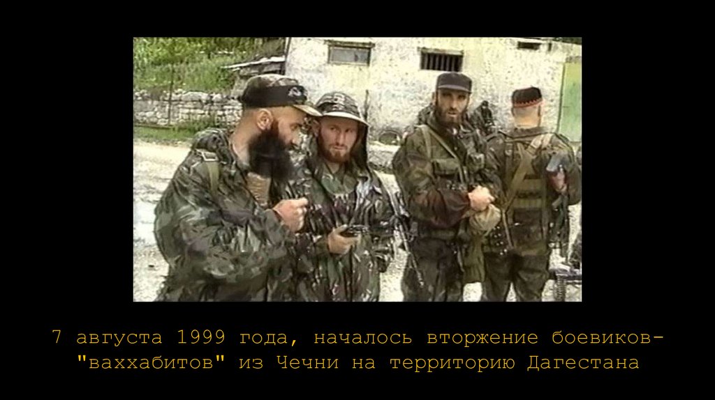 7 августа 1999 года, началось вторжение боевиков"ваххабитов" из Чечни на территорию Дагестана23.