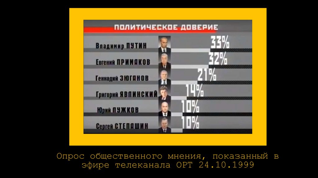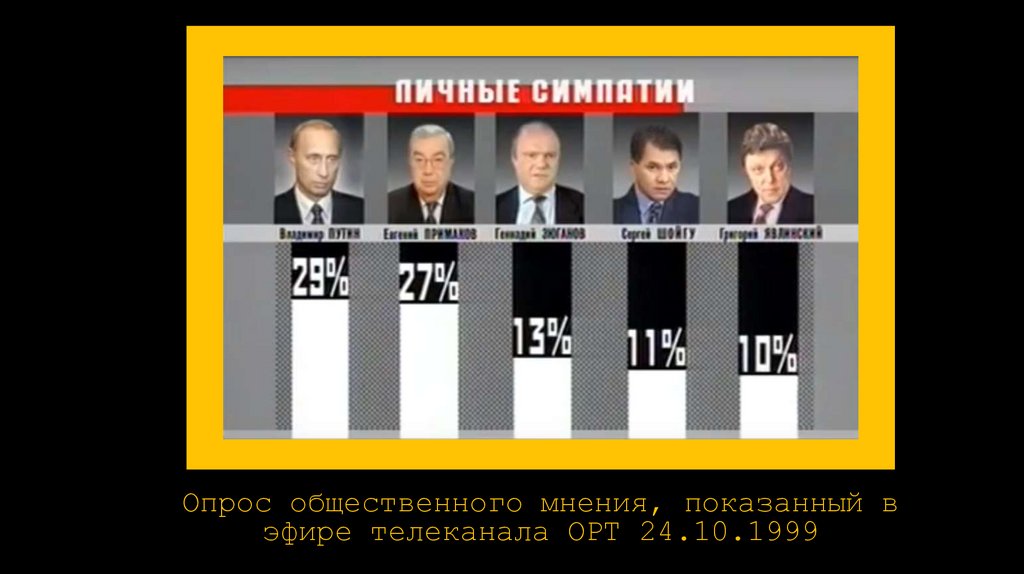 Опрос общественного мнения, показанный вэфире телеканала ОРТ 24.10.1999