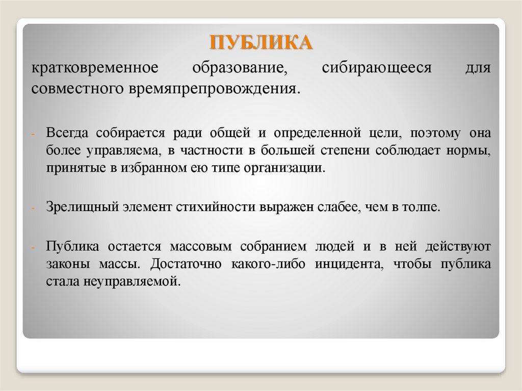 Публика остается массовым собранием людей и в ней действуют