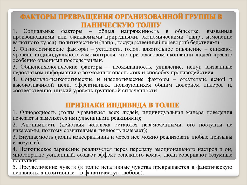 ФАКТОРЫ ПРЕВРАЩЕНИЯ ОРГАНИЗОВАННОЙ ГРУППЫ ВПАНИЧЕСКУЮ ТОЛПУ
