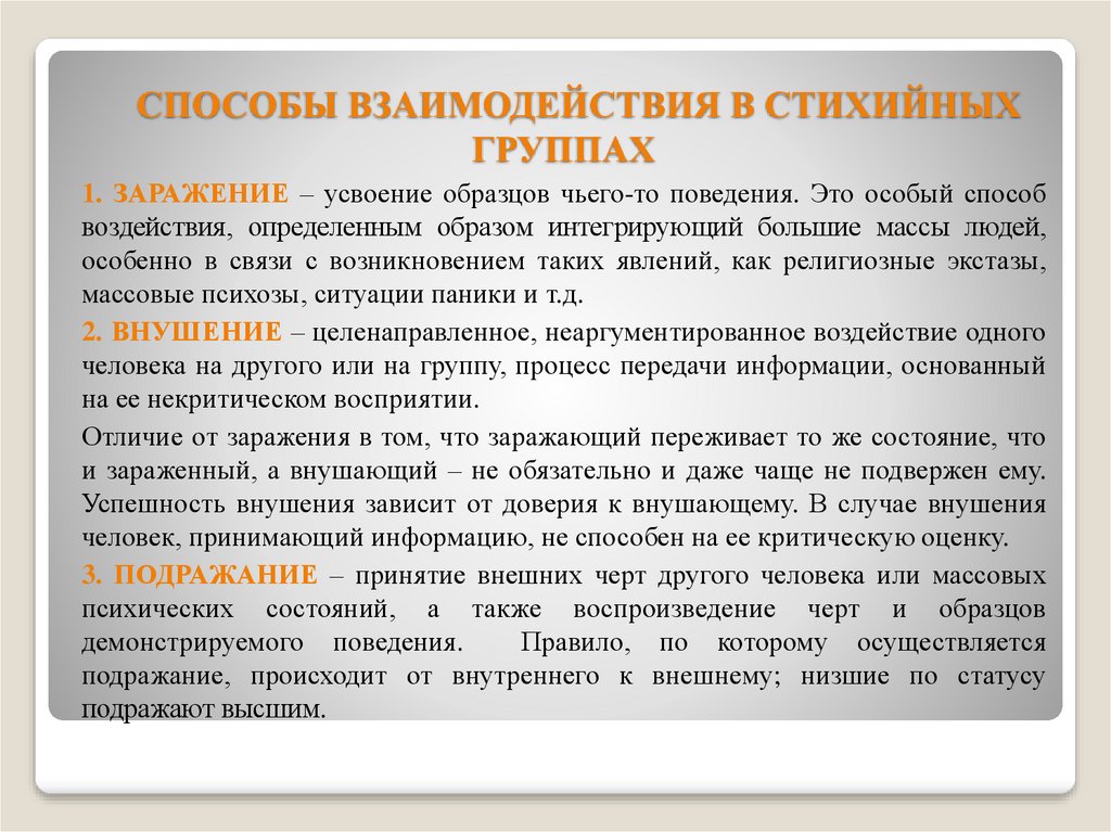 Способы взаимодействия в стихийных группах.