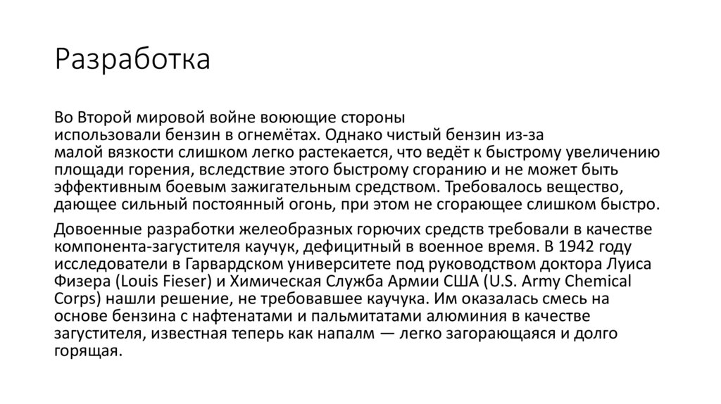 эффективным боевым зажигательным средством. Требовалось вещество,