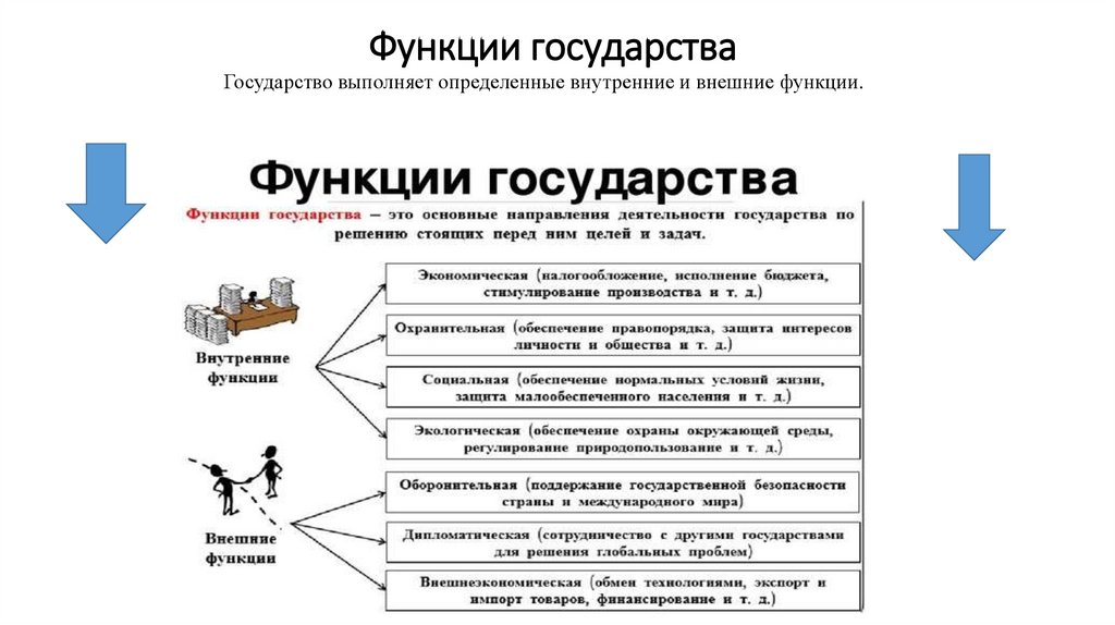 Функции государстваГосударство выполняет определенные внутренние и внешние функции.