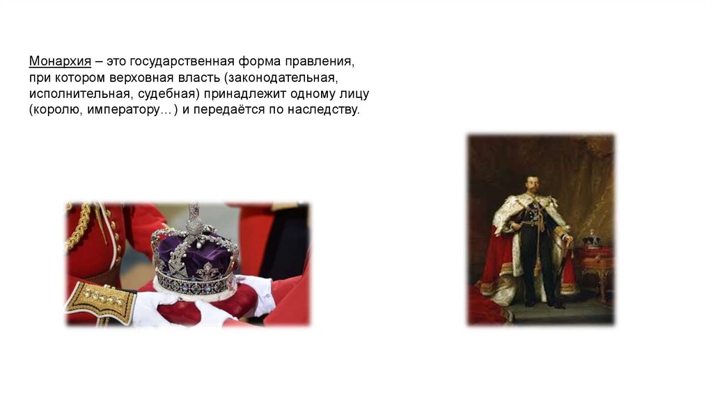 Монархия – это государственная форма правления,при котором верховная власть (законодательная,